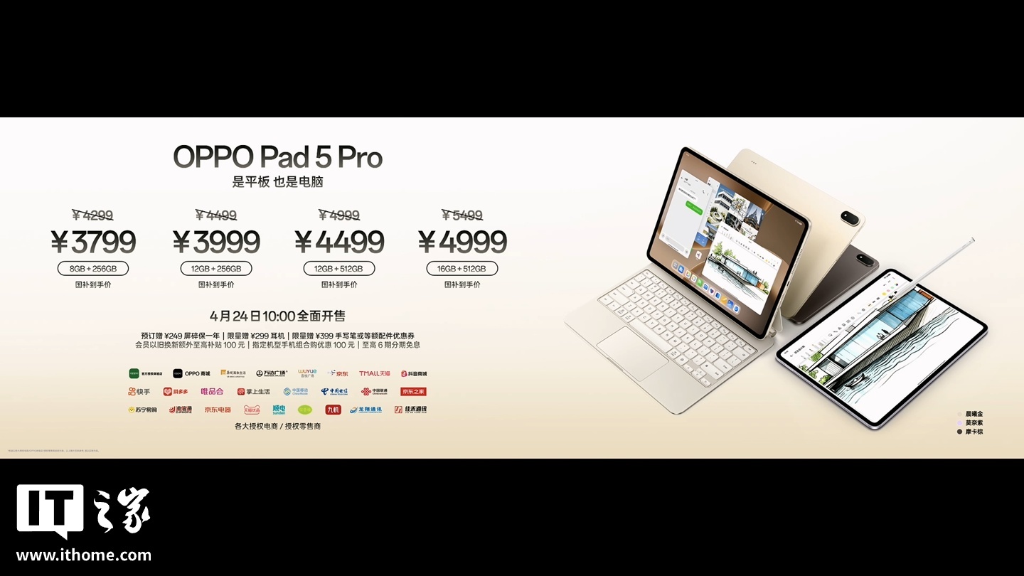 14、4299 元起:OPPO Pad 5 Pro 发布,搭载第五代骁龙 8 至尊版芯片、13.2 英寸 3.4K 超清原彩屏