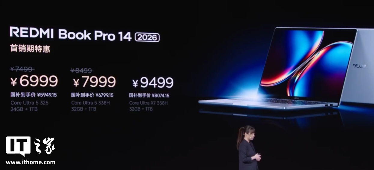 18、小米 2026 款 REDMI Book Pro 14/16 英寸笔记本发售:至高搭酷睿 Ultra X7 358H,6999-9699 元