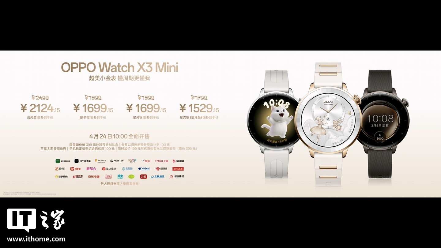 25、1799 元起:OPPO Watch X3 Mini 发布,骁龙 W5 芯片、首发生理周期运动指导功能
